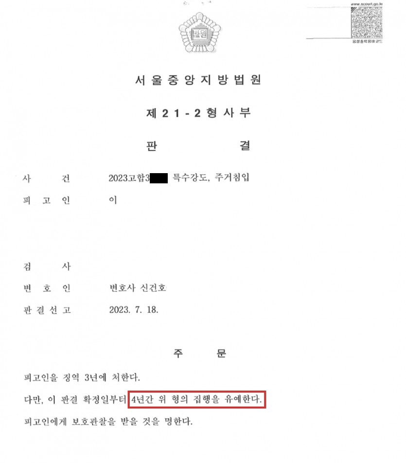 특수강도죄와 주거침입죄가 병합된 두 개의 사건이었음에도, 피고인은 집행유예로 석방되어 자유의 몸이 될 수 있었습니다.